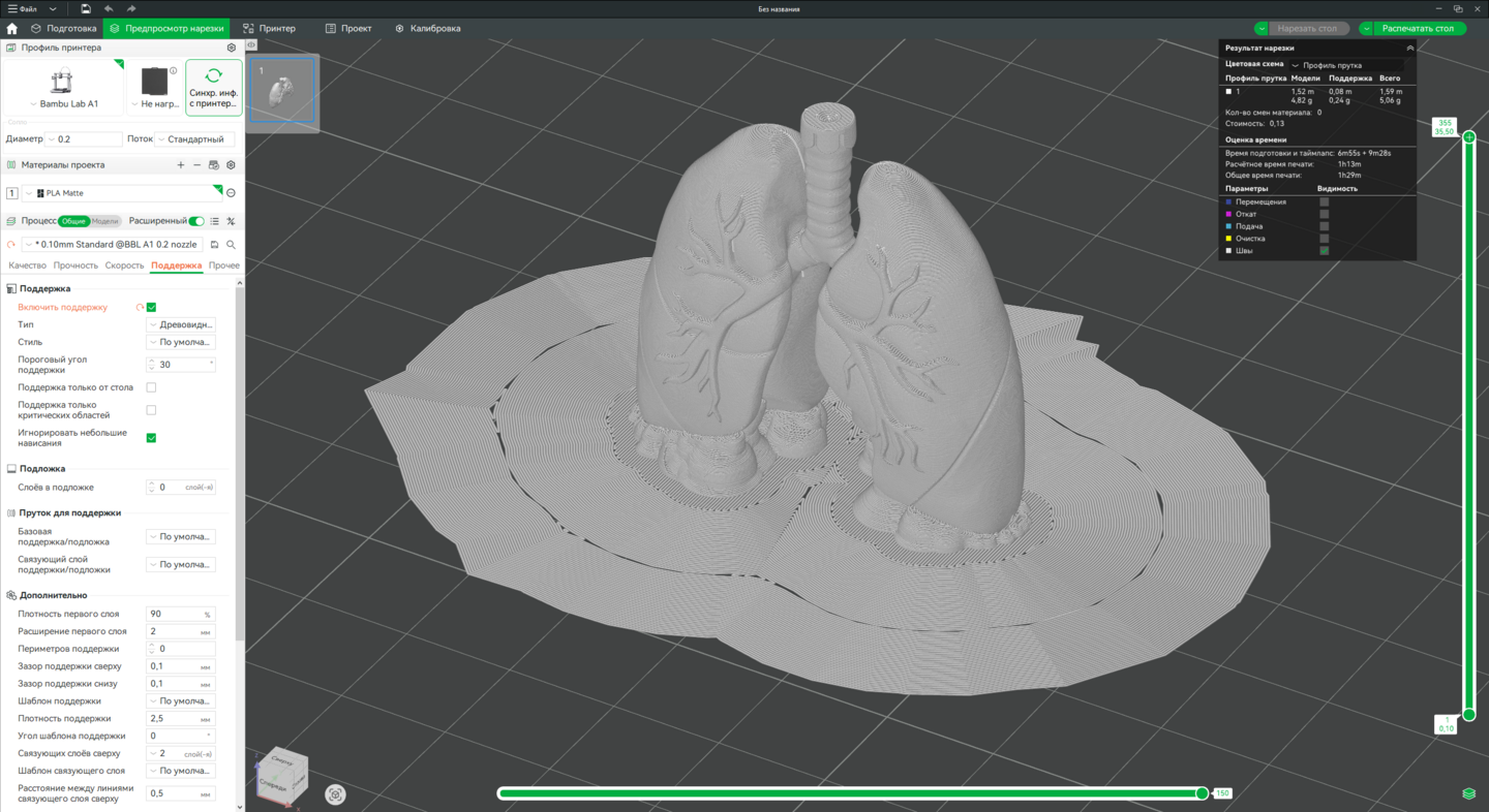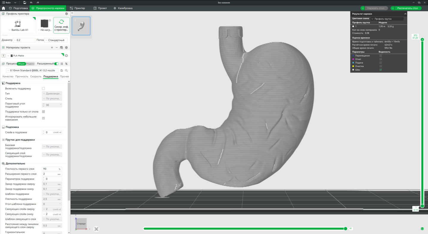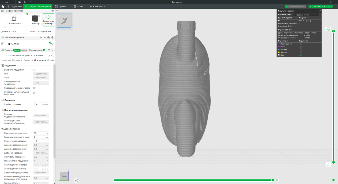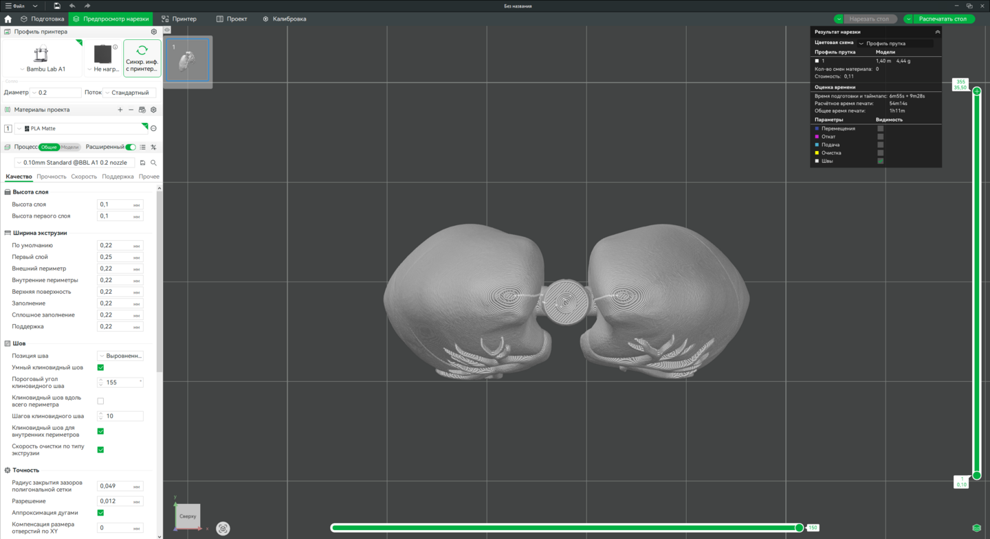 3. Доработка моделей в Bambu Studio, подготовка к печати на принтере Bambu Lab A1.
