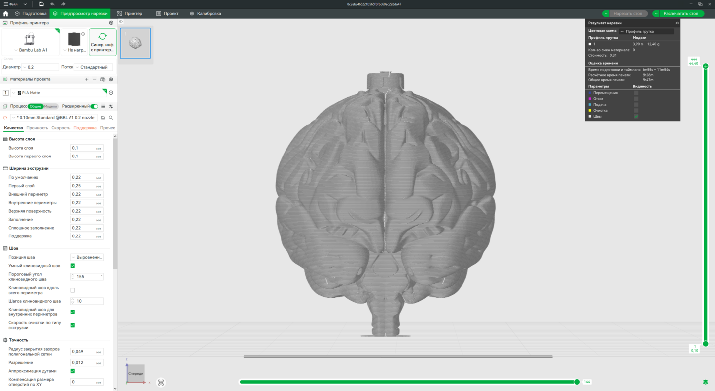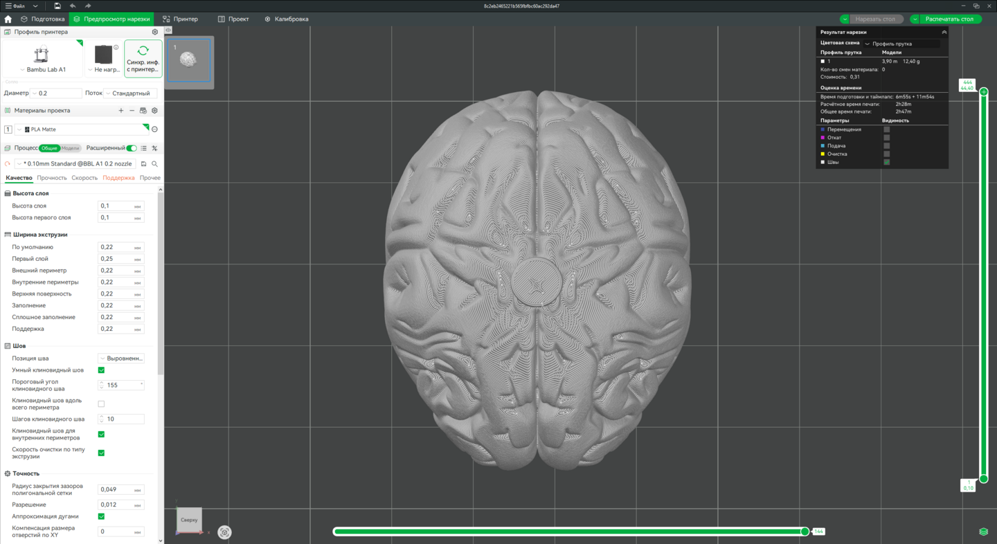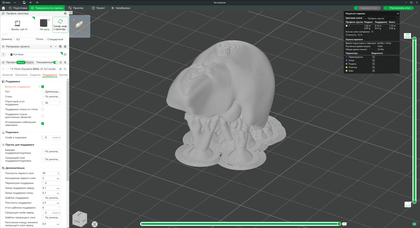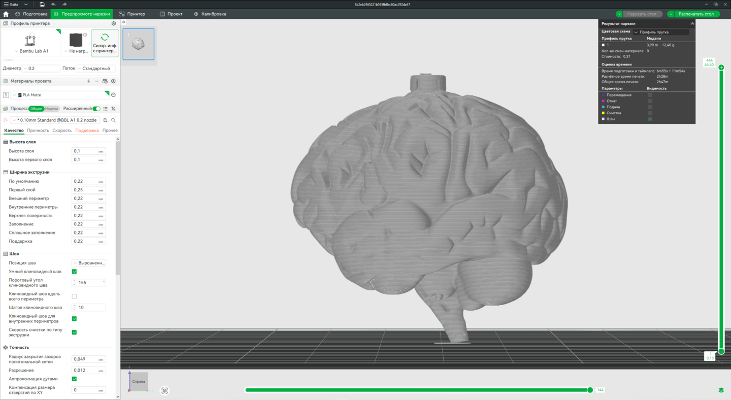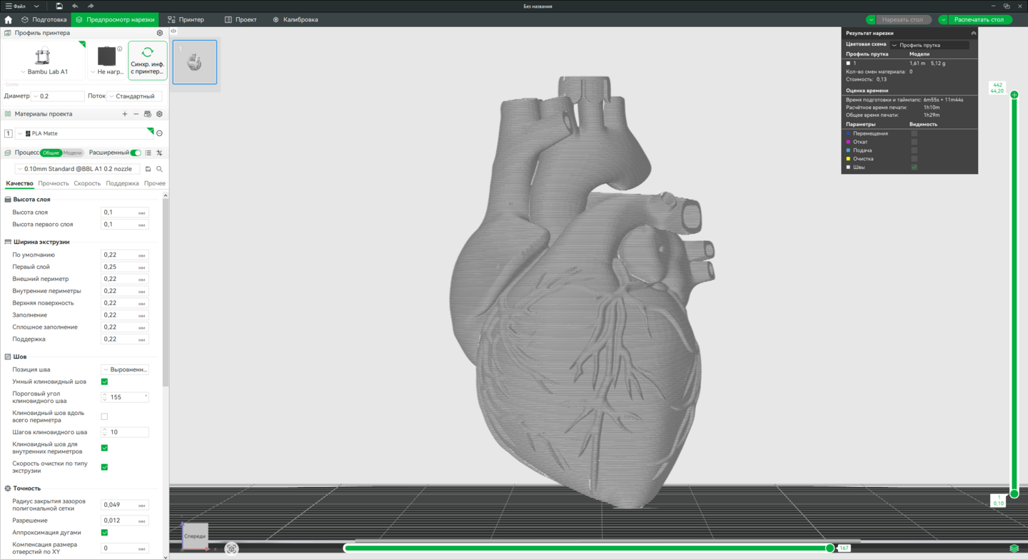 3. Доработка моделей в Bambu Studio, подготовка к печати на принтере Bambu Lab A1.