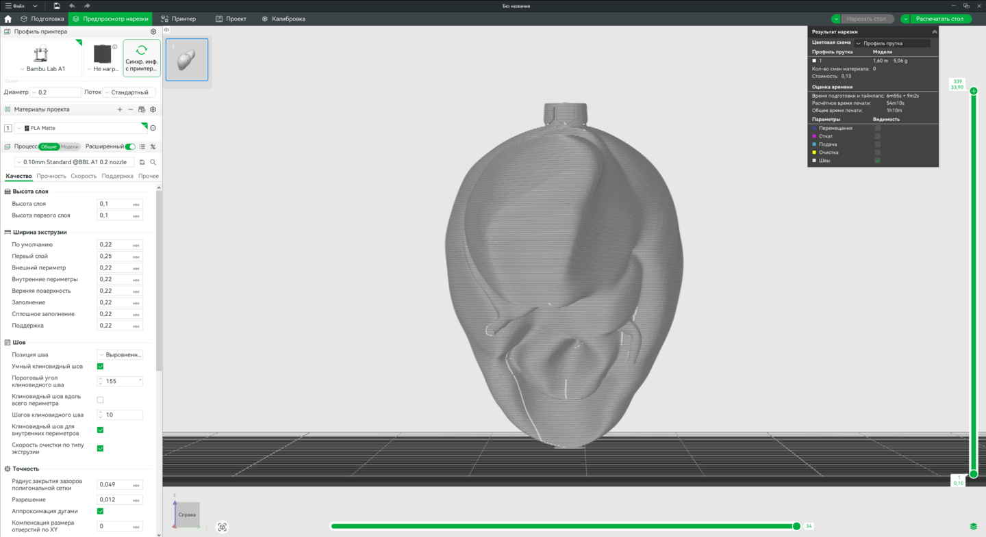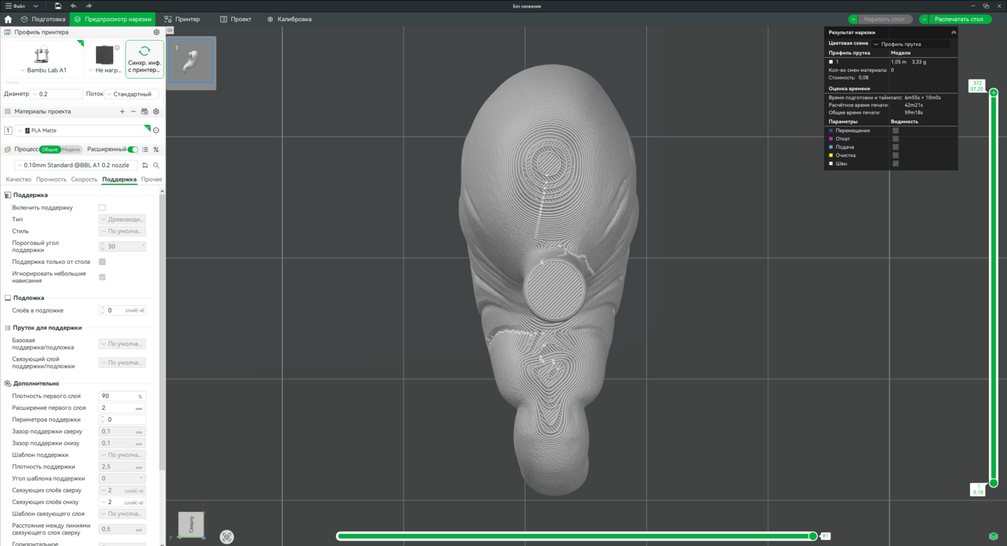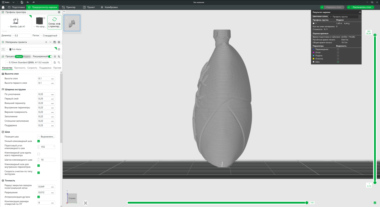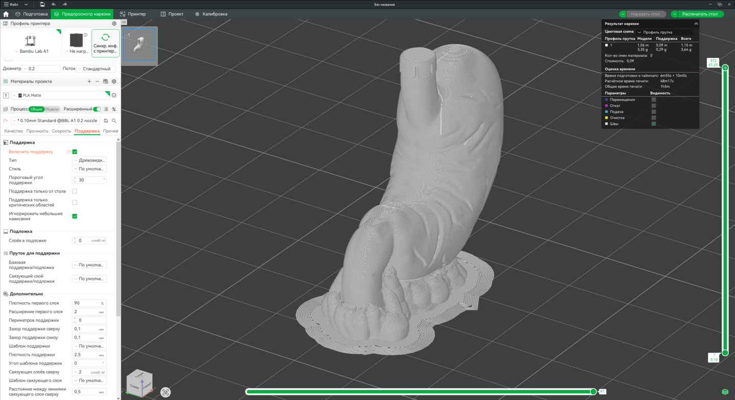 Технология: FDM 3D-печать. Оборудование: Принтер Bambu Lab A1 (или аналогичный). Программа для слайсинга: Bambu Studio.