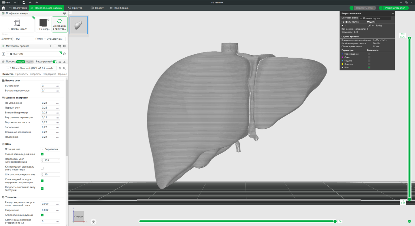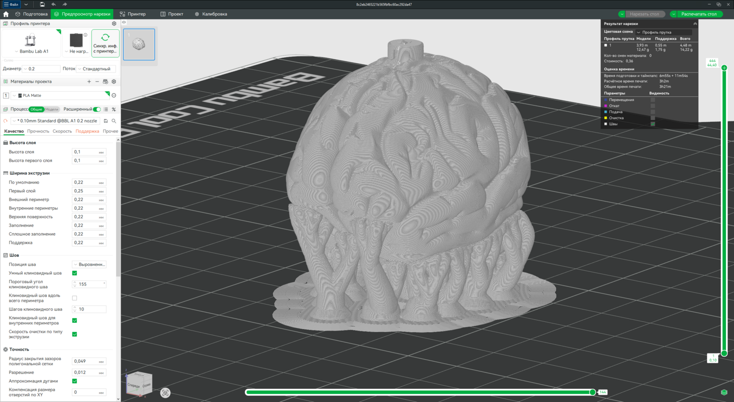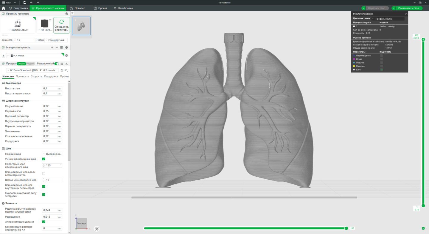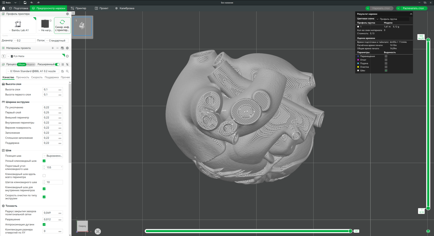 Технология: FDM 3D-печать. Оборудование: Принтер Bambu Lab A1 (или аналогичный). Программа для слайсинга: Bambu Studio.