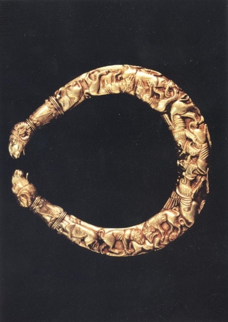 1.браслет, IV–V века до н. э. 2. спиральный браслет с фигурками животных, выполненный из золота. Это украшение относится к «Сибирской коллекции» Петра I, Эрмитаж, IV–III век до н. э