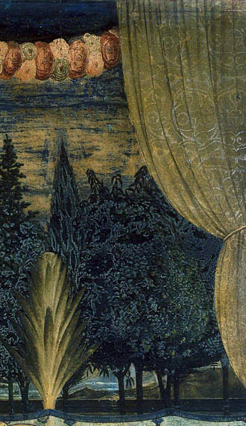 В работах усиливается значимость передачи конкретного образа — черты Эпохи Возрождения. Например, на заднем плане уже можно отличить один вид дерева от другого: точно опредлен кипарис — символ бессмертия, сзади ели и скорее всего яблони или кедр.
