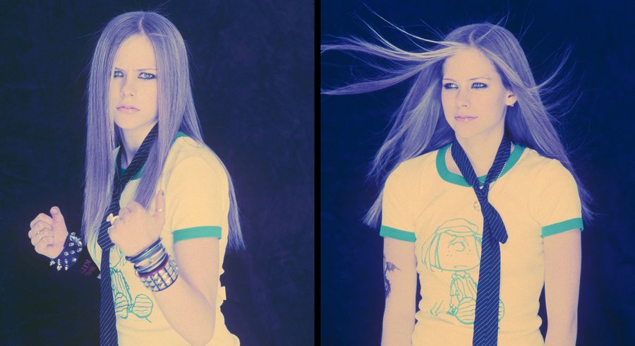 Слева и справа: Аврил Лавин, 2004 г. По центру: Аврил Лавин для журнала Chart, фотограф Наташа Николсон