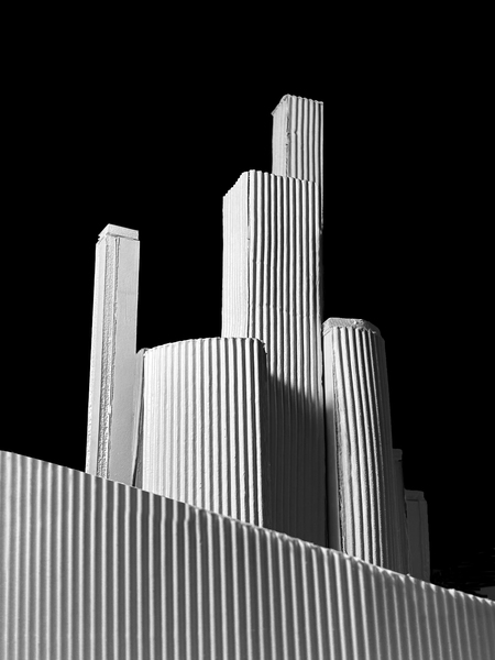 Макет был сделан из пенокартона и гофрокартона, который также создает эффект кривых, то приближающихся к асимптоте, то отдаляющихся от неё.