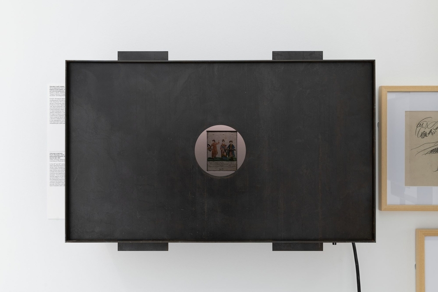 Часть экспозиции «Парадокс береговой линии» в ГЭС-2 // Фрагмент работы Андрея Черкасова «Трёхсторонняя азбука» Фото: Даниил Анненков