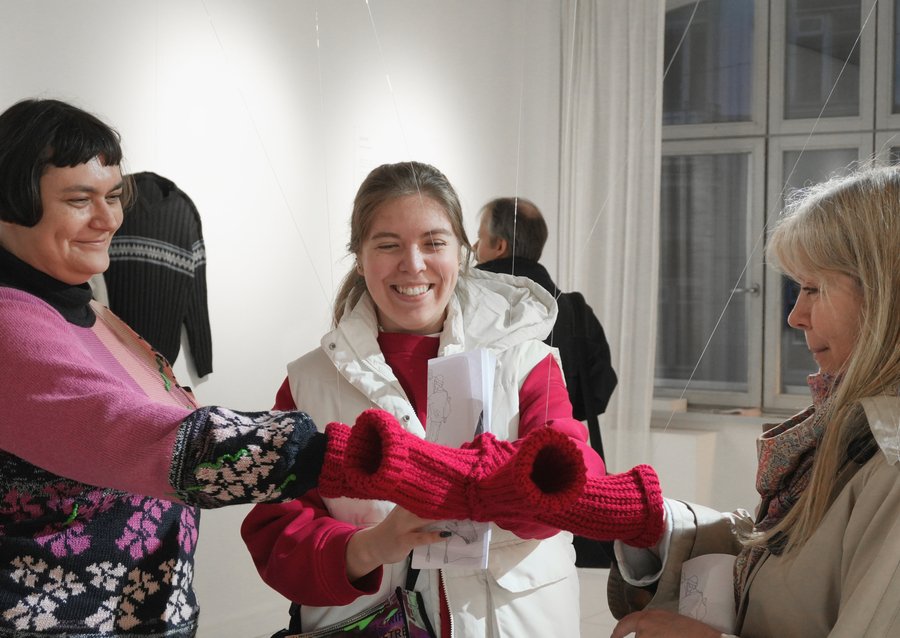 «Вместе» — интерактивная коллективная варежка, дружеская клятва в верности. Сложенные вместе руки — знак принадлежности к сообществу и напоминание о том, что человечество — это команда. У варежек нет больших пальцев, которые могли бы решить чью-то судьбу. По одной из легенд древнеримские воины отрубали себе большие пальцы, чтобы не идти воевать, ведь без большого пальца меч невозможно держать в руке. Большой палец императора, поднятый вверх, останавливал бой гладиаторов, а опущенный означал смертельный приговор. В сообществе нет места единоличному принятию решений и насилию, поэтому большие пальцы находятся вместе со всеми остальными и не обладают могуществом.