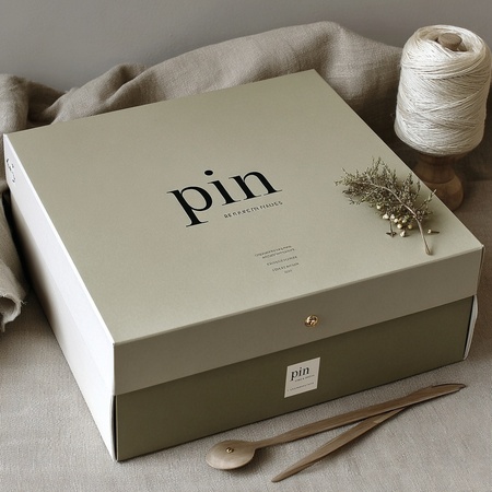 — Create a branded box for «pin» products.