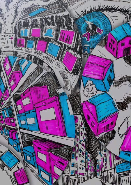 Техника скетча передаёт движение скорость города