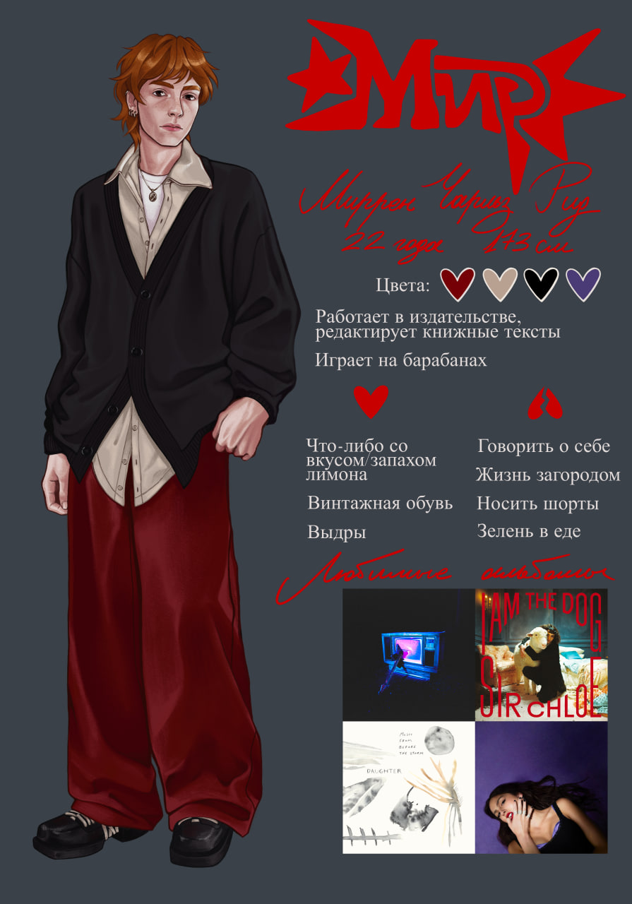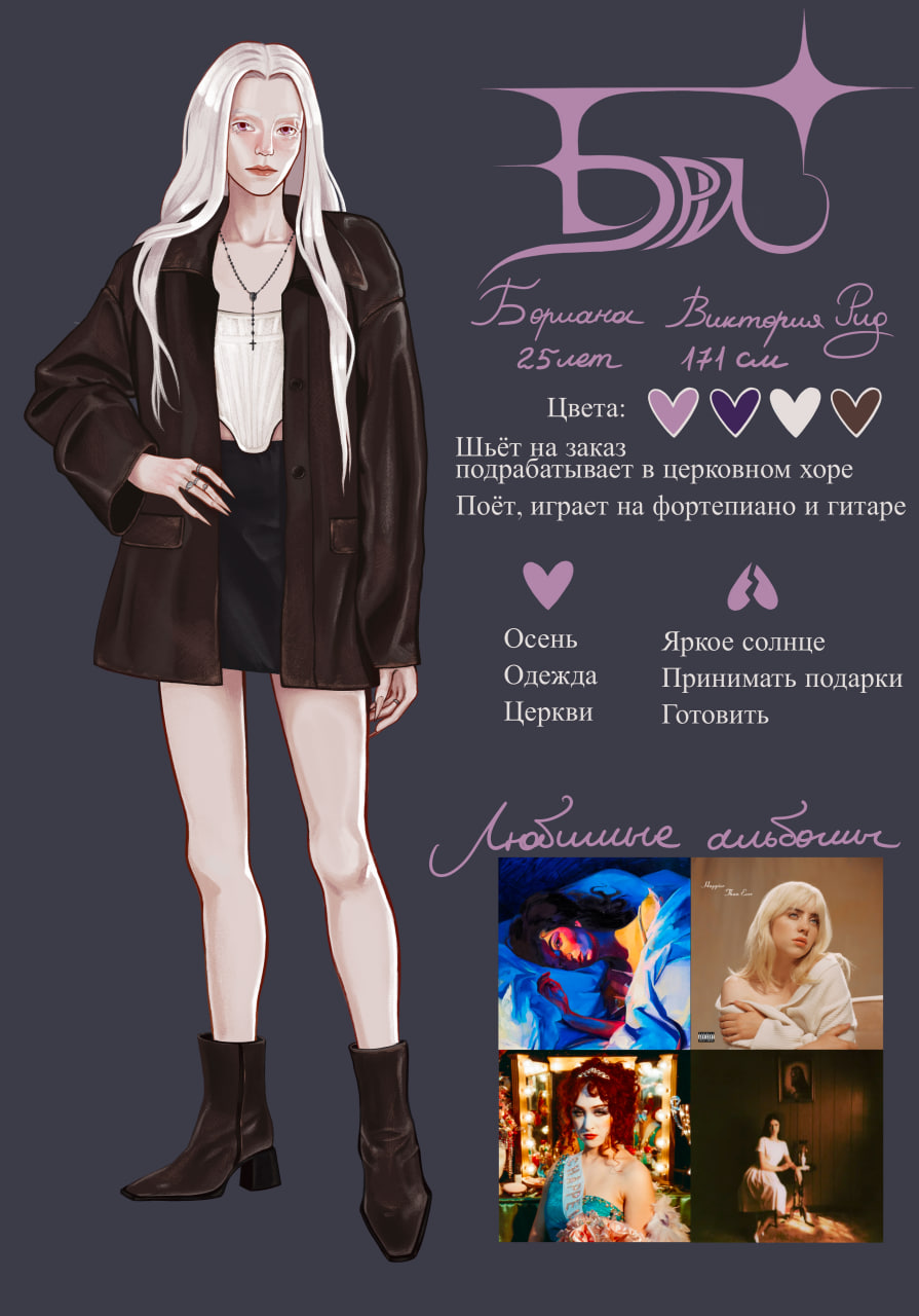 Ниже представлены персонажи, которые были придуманы мной в раннем подростковом возрасте. Они растут, меняются и развиваются вместе со мной и через них я передаю и проживаю свои эмоции и переживания.
