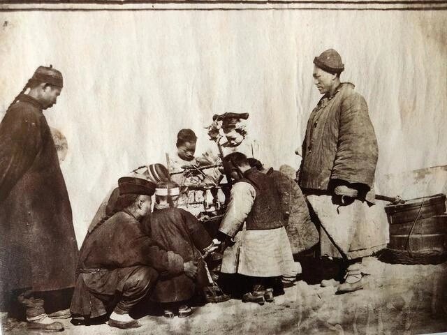 Жители эпохи Цин. Слева мужчина в гуапимао
