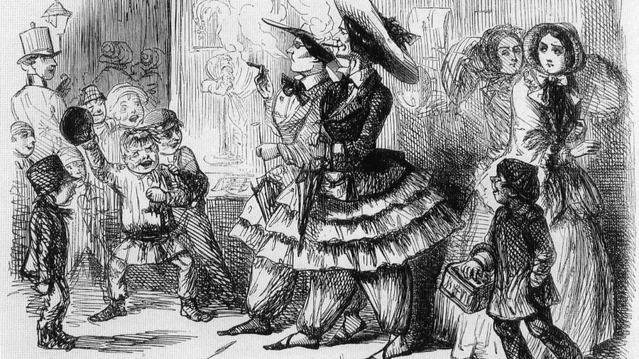 Иллюстрация «Группа пьяных женщин-полицейских в „блумерах“, игнорирующих уличную драку поблизости», примерно 1855 год [29]