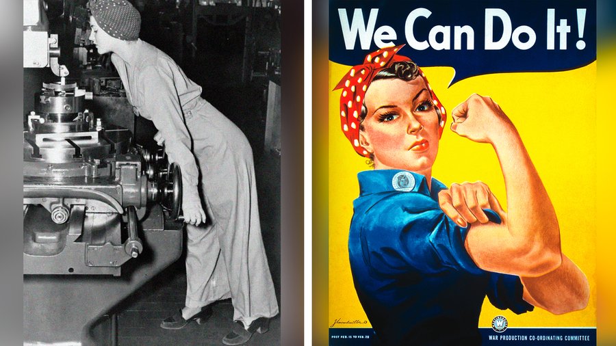 Во время Второй мировой войны женщины в рабочей одежде стали символом участия в военных усилиях. Знаменитый плакат Джей Говарда Миллера «We Can Do It!» с работницей в комбинезоне связал женские брюки с патриотизмом. В 1950-е наблюдалось возвращение к традиционным гендерным ролям, однако документальная фотография продолжала показывать женщин в брюках, особенно в контексте молодежных субкультур.