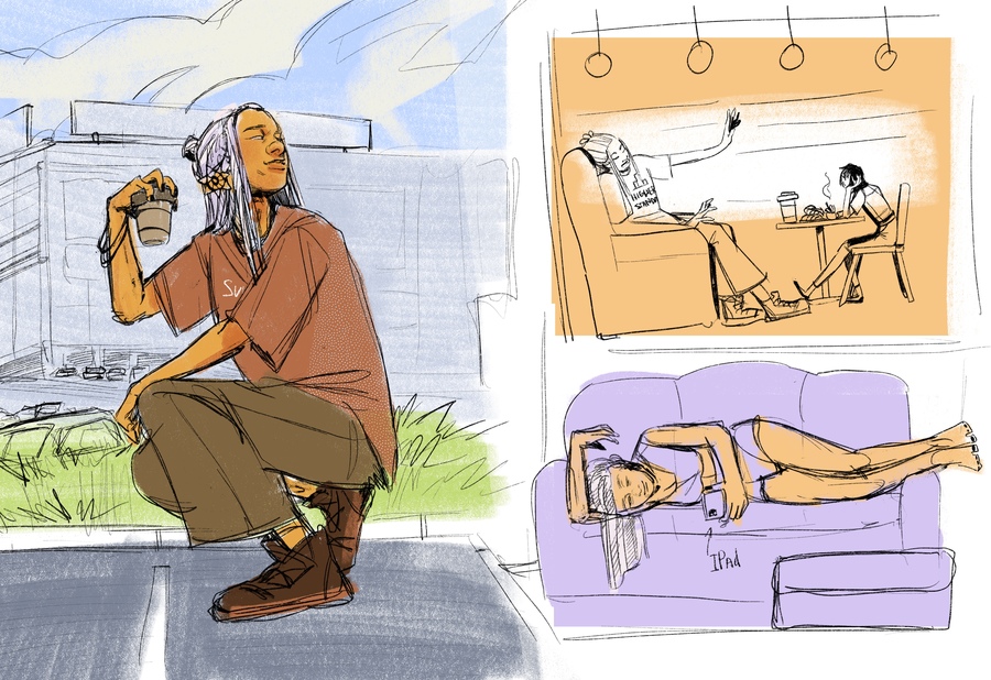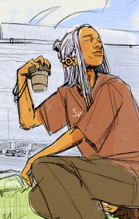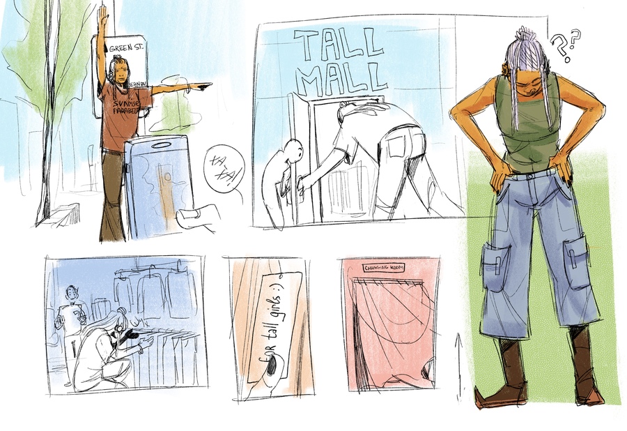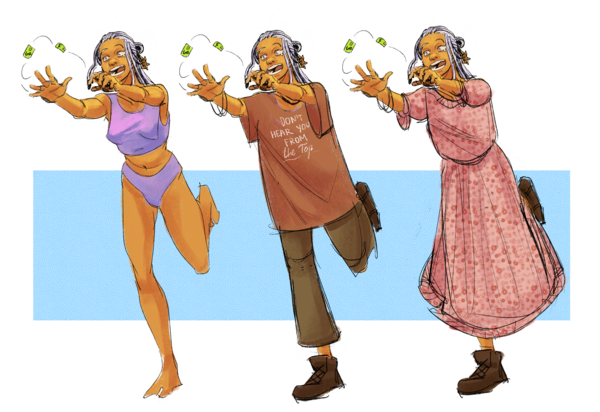 Ко мне обратились заказчики из издательства «Самокат» с заданием разработать дизайн главной героини подросткового комикса Ки, Солнечной великанши. Нужно было сделать серию скетчей дизайна персонажа, в обычной одежде и боевой, а также поместить его в среду.