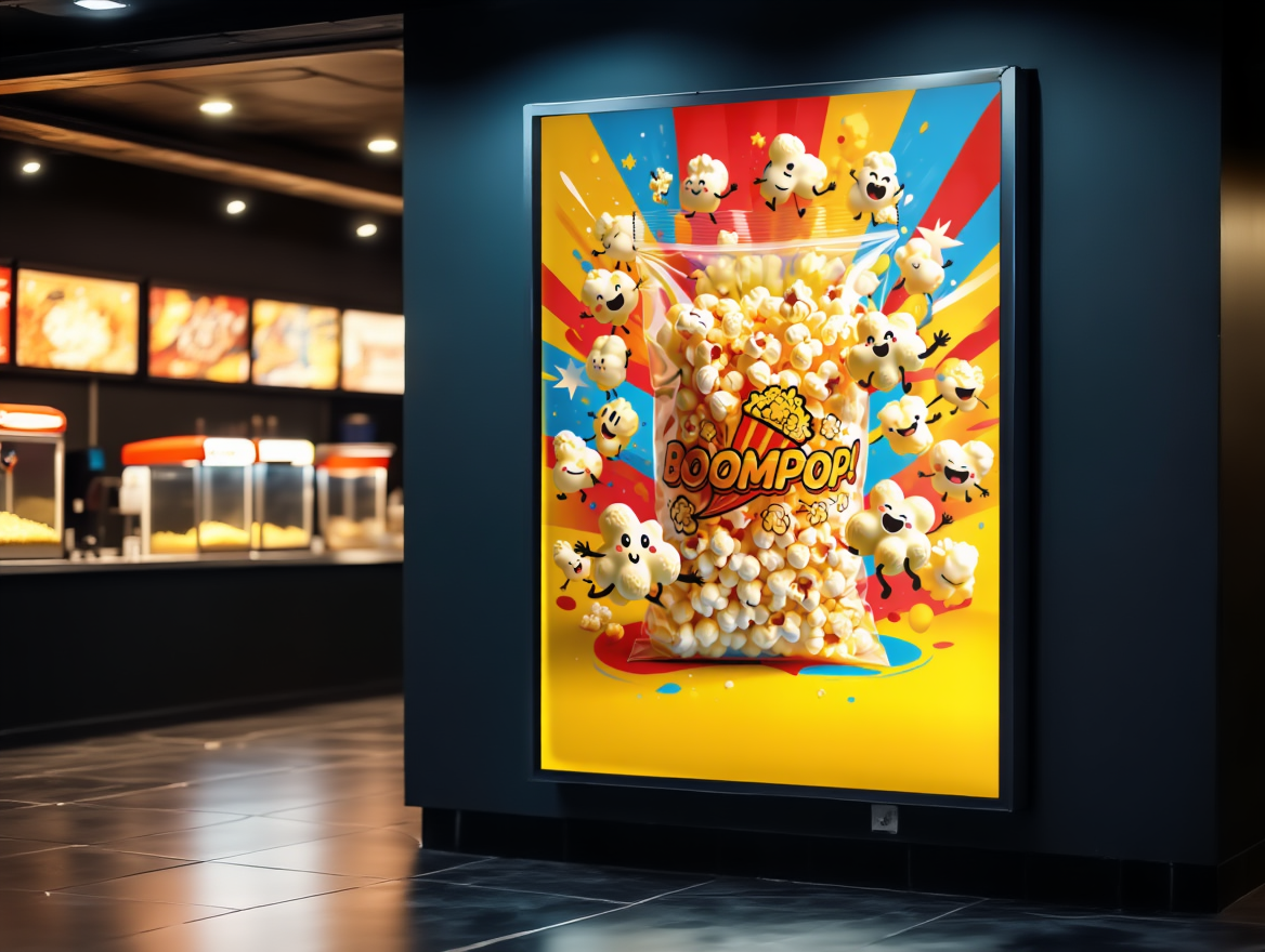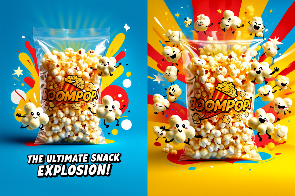 Генерация названия: Generate 20 variants of naming for the company that produces popcorn. (ChatGPT) Генерация логотипа: Generate a logo for a company that produces popcorn with the name «BoomPop!» (Recraft) Генерация фотографий продукта: Generate photos of popcorn in the package with this logo (Reve) 4) Генерация фотографий пространства: Generate a picture of the shop selling popcorn where this popcorn is being sold (Reve) 5) Generate 5 variants of posters with this product (Здесь и далее в этом пункте: Reve) + Generate 3 posters in this style + Generate the photo of this poster in the hall of the cinema + Generate this poster being a promotional flyer handed in in the street 6) Цветовая палитра: Adobe Color, промпт не понадобился Шрифтовая пара: Generate font pairing for the design of this product (Reve) Носители: А) Футболка (Здесь и далее в этом пункте: Reve) Generate t-shirt in the color palette from the first picture and logo from the second picture + Make a mockup of this t-shirt on the man sitting in the cinema Б) Шоппер Make a mockup of this tote bag being in hands of the woman that eats popcorn in the street В) Визитка Make a mockup of the business card laying on the seat in the cinema. Change the color of the business card to the red from the palette on the second picture that I send. Г) Карандаш: Generate pencil in the style of this product Д) Билеты в кино с рекламой попкорна: Generate promo of this product on the cinema ticket