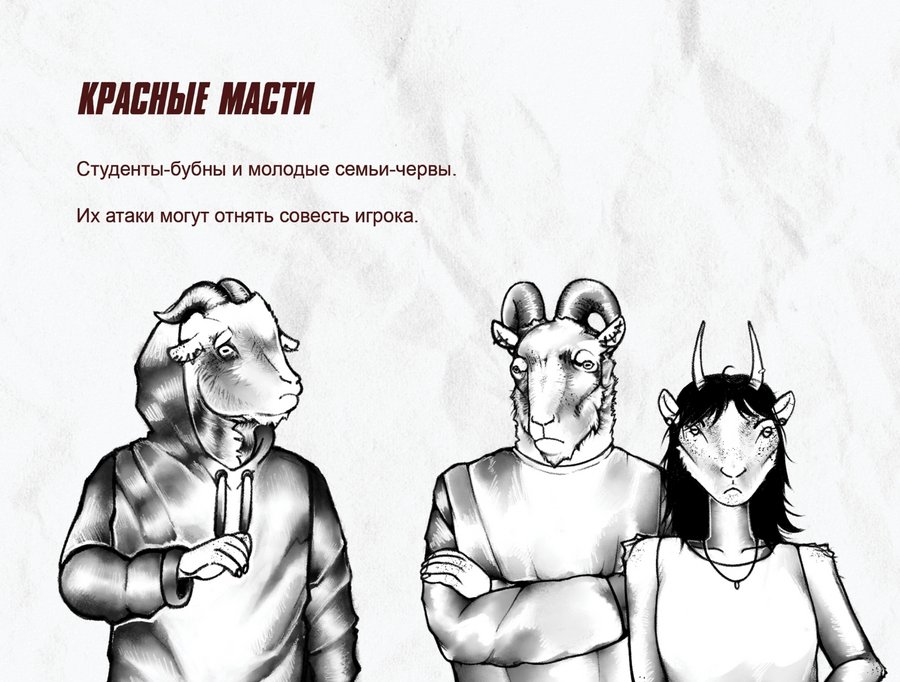 Anthropomorphic goats and sheep in a black and white sketch style, three characters standing side by side — one goat in a hoodie, one ram with folded arms near one female sheep with short hair and small horns, all with serious or moody expressions, light paper texture background, graphic novel or ink drawing style, high contrast shading.