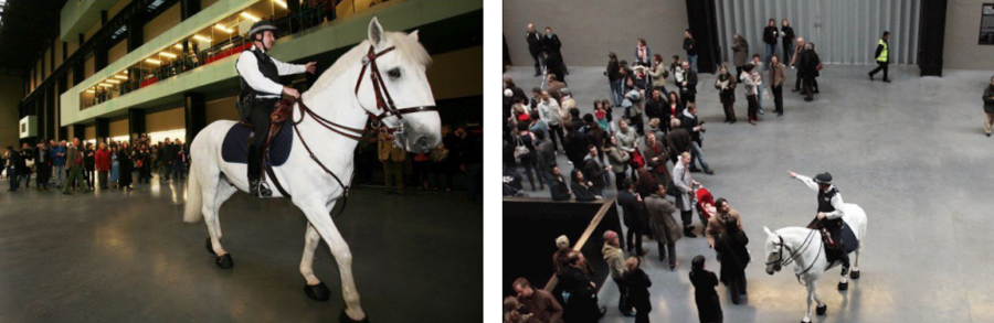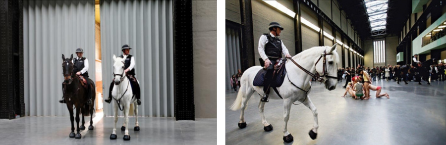 Примером такой практики является проект Олафура Элиассона The weather project / «Погодный проект», 2003, представленный в Tate Modern. Художник создаёт гигантское искусственное солнце и туман, формируя пространство, в котором зрители собираются, лежат на полу, наблюдают отражение себя и других в зеркальном потолке. Физическая организация пространства и движение участников превращают их взаимодействие в часть произведения: зрители наблюдают не только инсталляцию, но и других людей, создавая новый коллективный ритуал.