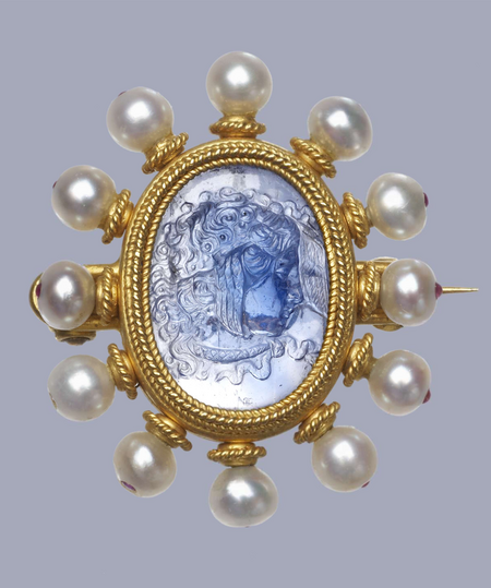 Кулон с камеей, камея итальянская, оправа английская (1864 г. приблизительно) // Брошь с портретом Мастерская: Castellani — Италия, примерно 1870 г.