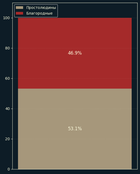 Однако, несмотря на то, что основной каст персонажей принадлежит к благородным Домам, простолюдины все равно умирают на страницах чаще. По всей видимости, сюда включены все эпизодические персонажи, которые часто появляются лишь для того, чтобы быстро умереть, продемонстрировав жестокость мира к простому населению.