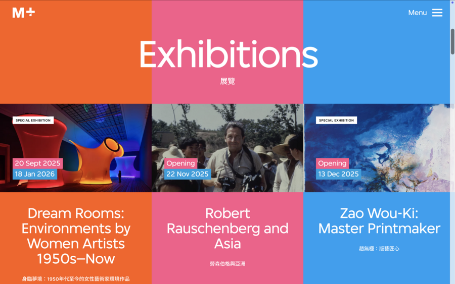 Сайты музеев современного искусства, таких как Guerrilla M+ и другие азиатские глобальные учреждения, выступают инструментом переосмысления экспозиции. Их визуальные решения — типографика, насыщенные цвета, динамика интерфейса — отражают концепцию музея и эмоциональное настроение коллекции, создавая цифровую эквивалентность физического пространства.