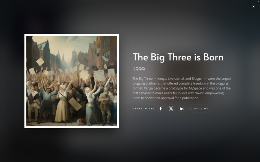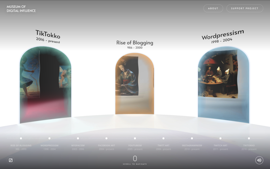 Особое внимание заслуживает использование мультимедийных элементов, включая музыкальное сопровождение и анимацию, как, например, на сайте «Once in a Lifetime». Интеграция анимации персонажей и игровых элементов способствует повышению вовлечённости, создаёт уникальный пользовательский опыт и усиливает запоминаемость ресурса. Таким образом, сочетание визуальных, интерактивных и аудиальных компонентов формирует игривую атмосферу, подчеркивает индивидуальность музея и способствует эффективному привлечению аудитории.