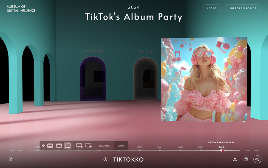 Некоторые музеи применяют нестандартную цветовую палитру для усиления восприятия: Mewcam гармонично сочетает чёрно-белый фон с цветными картинами, Stride и Pigtroik отражают эстетику стрит-арта. Garage Museum использует интерактивность, позволяя пользователям манипулировать пикселями, создавая дополнительное погружение.