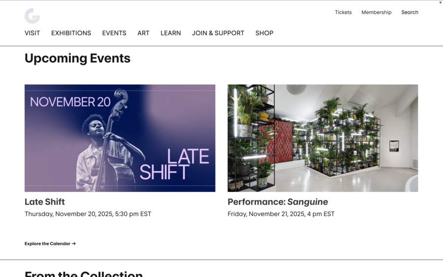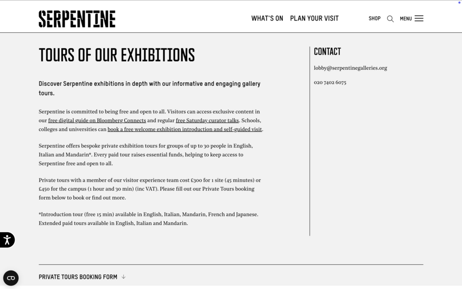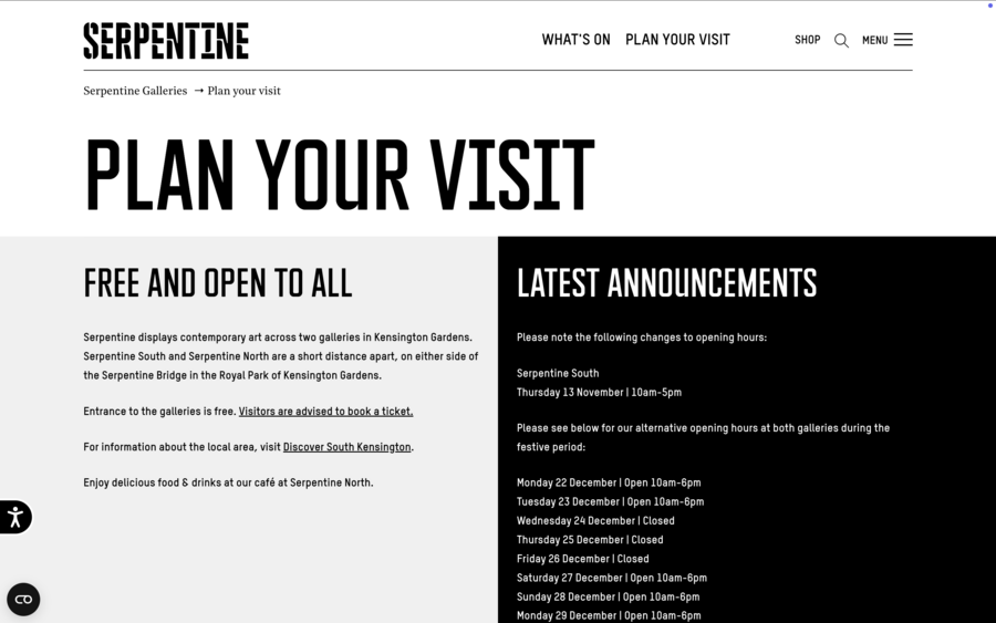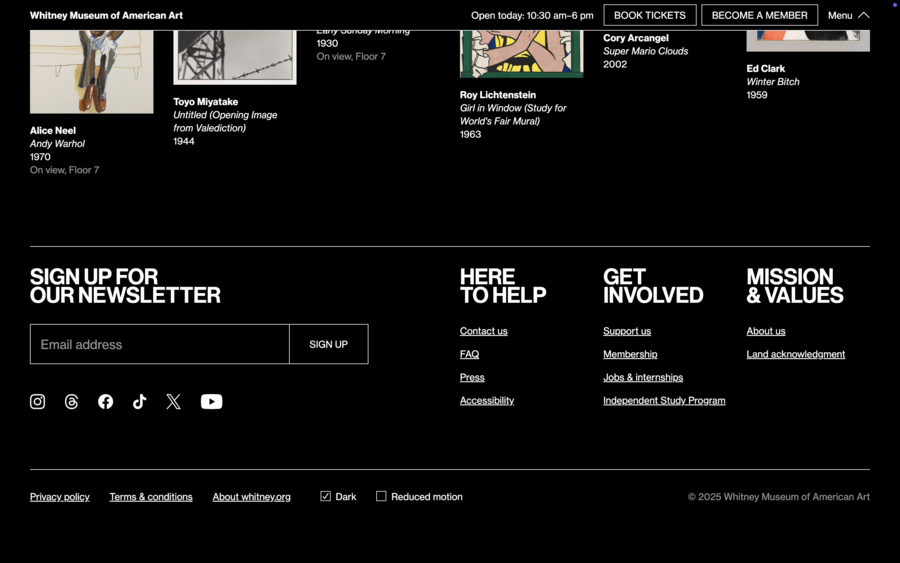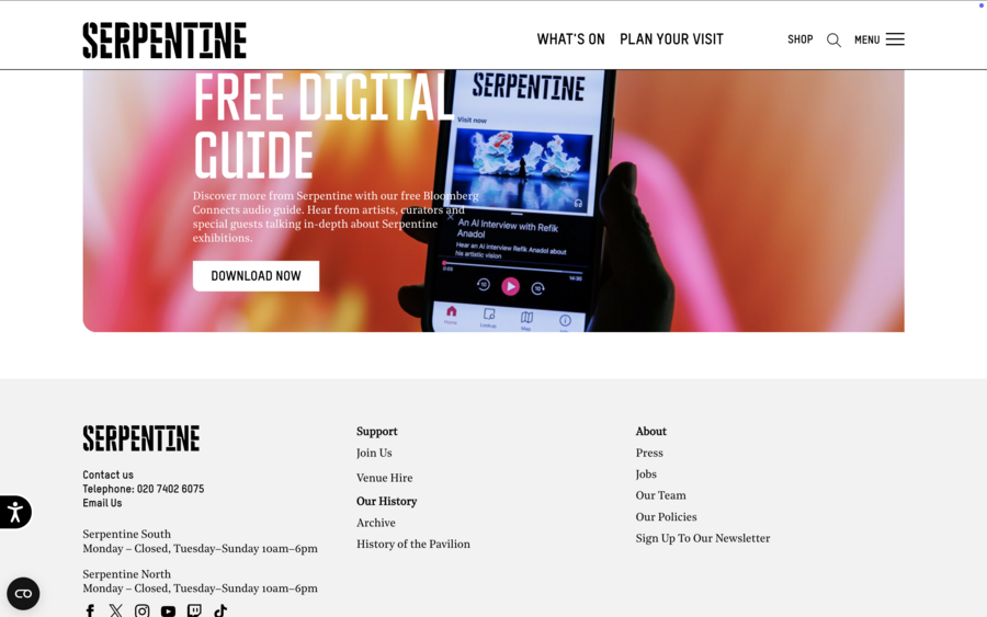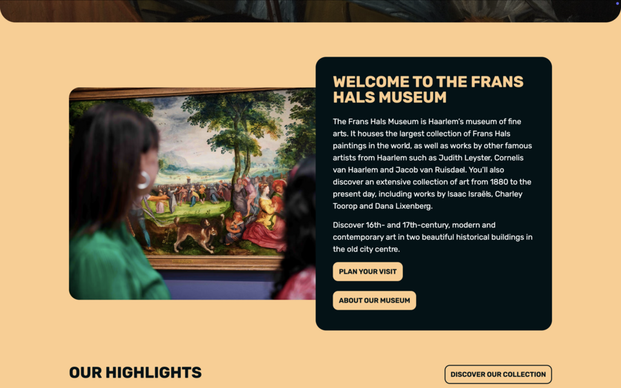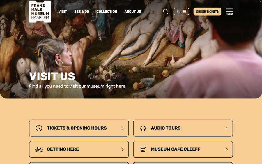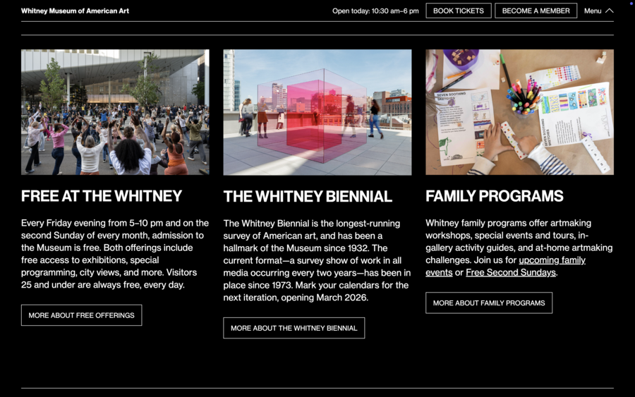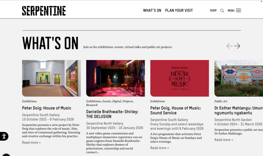 Аналогично, сайт Whitney Museum сочетает выразительную типографику и качественную фотографию, обеспечивая эмоциональное вовлечение пользователя. M+ демонстрирует возможности виртуальных выставок, позволяя полноценно представить разнообразие коллекции. Frans Hals Museum использует типографику и визуальные решения, соответствующие стилю музея, а Design Museum через крупные изображения и динамичные элементы подчёркивает актуальность своих программ.