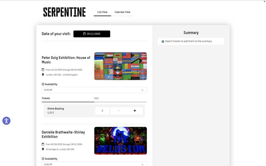 Serpentine/покупка билета