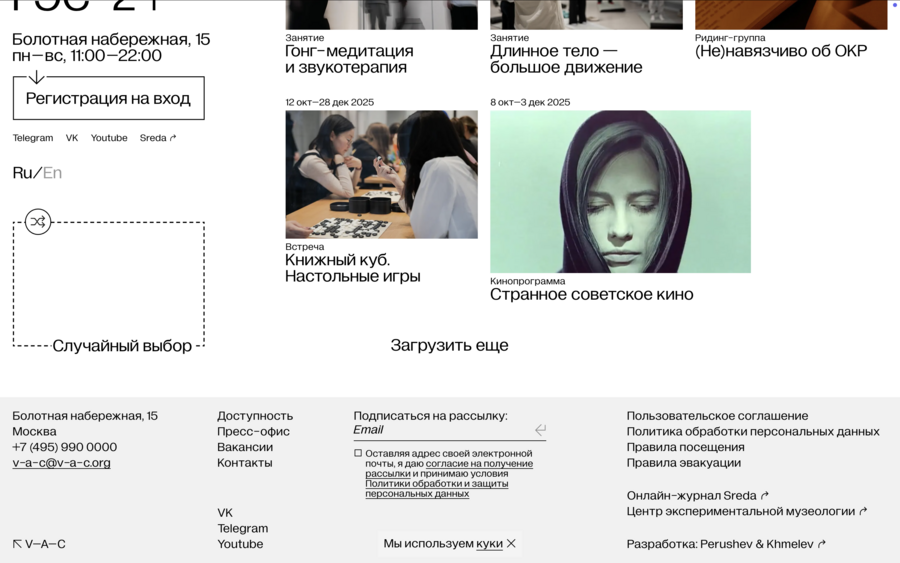 Сайт действует как своеобразный «визуальный жонглёр», удерживающий несколько задач одновременно: привлекать внимание, помогать посетителю, обеспечивать удобный доступ к информации, формировать впечатление о музее и поддерживать его брендовую идентичность. По сути, цифровая платформа становится продолжением архитектуры и атмосферы музея, транслируя его визуальный язык, стиль и кураторское мышление. Она должна производить такое же сильное впечатление, как и физическое пространство музея — от входной группы до самой выставки.