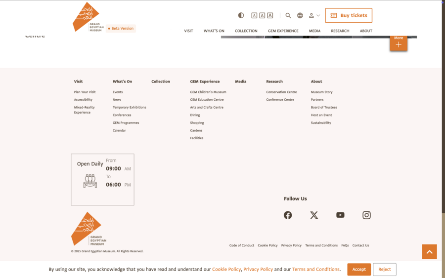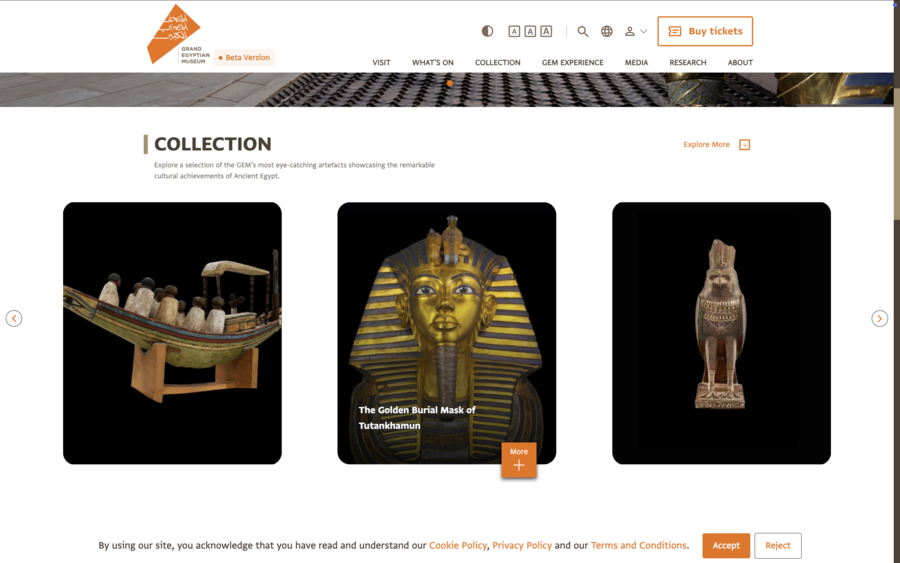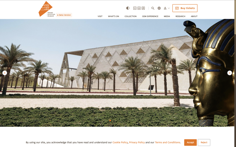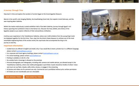 Примером служит недавно открытый Grand Egyptian Museum (GEM), где сайт сохраняет шаблонные элементы оформления для обеспечения доступности широкой аудитории. Аналогичные стратегии реализованы в Лувре и Русском музее, сочетая консервативный визуальный язык с современными функциональными решениями.
