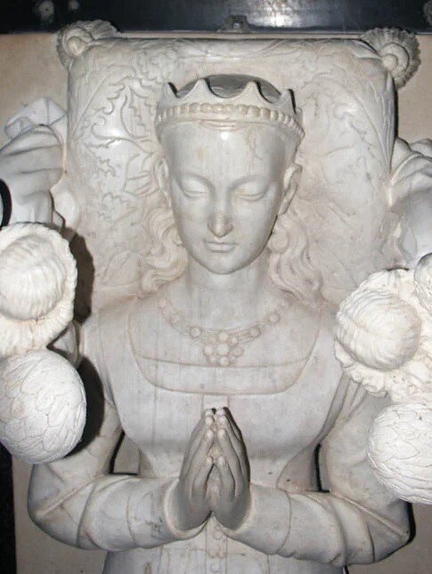 Верхняя чать скульптурного мраморного надгробия на могиле Агнессы Сорель