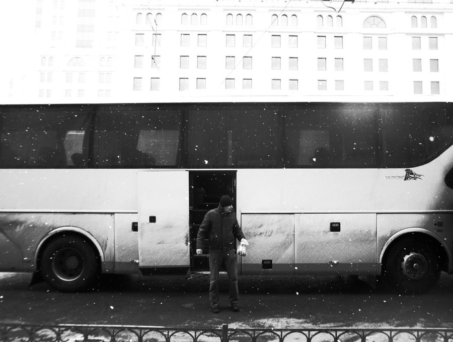 Поэтому транспорт оказывается переполненным. Люди выбирают движение внутри тёплого, хотя и тесного пространства вместо открытой улицы. Эта коллективная скученность порождает особую атмосферу — то, что Бёме назвал бы thermal atmosphere: густое тепло от множества тел, влажный воздух, ограниченность движений.