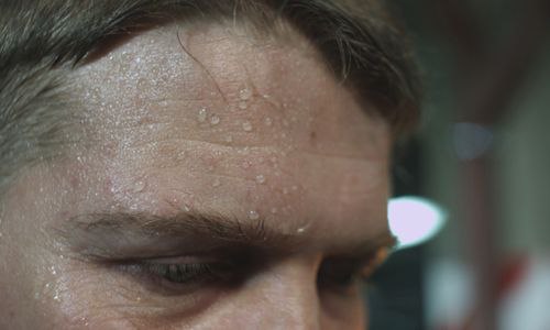 Выделяющийся пот на лице; Люди, движущиеся по линии метро Замоскворечье