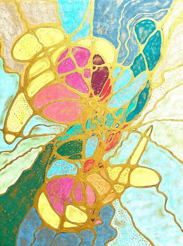 В этой картине мастерски сочетаются плавные линии нейрографики с яркими акриловыми оттенками, создавая живой поток рыб, словно плывущих сквозь мозаичный узор. Цветочные мотивы и текстурные детали передают теплое ощущение ретро, в то время как современная графика добавляет динамику и свежесть. Картина наполняет пространство энергией и гармонией, отражая естественное движение и красоту природы через абстрактные формы и тканевые элементы. Это произведение дарит вдохновение и приглашает зрителя погрузиться в мир декоративного искусства.