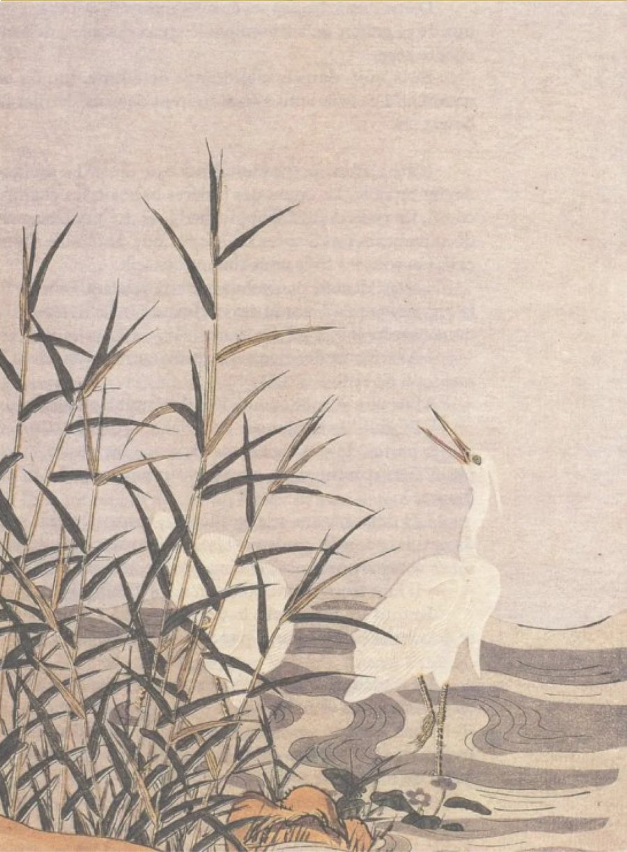 Судзуки Харунобу. Кот, бабочки и бегония. XVIII // Судзуки Харунобу. Цапли и тростник. XVIII