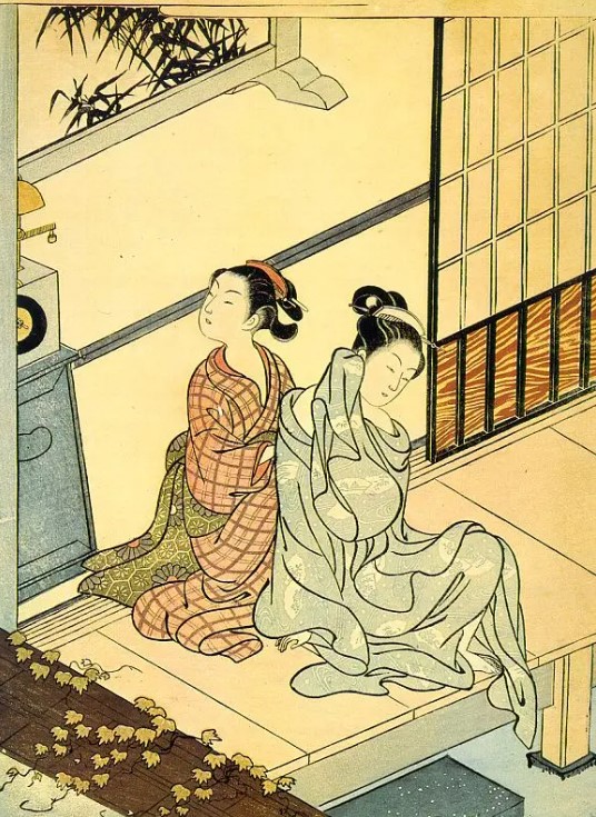 Судзуки Харунобу. Выход на прогулку. 1766 // Судзуки Харунобу. Вечерний звон часов. 1766
