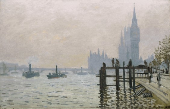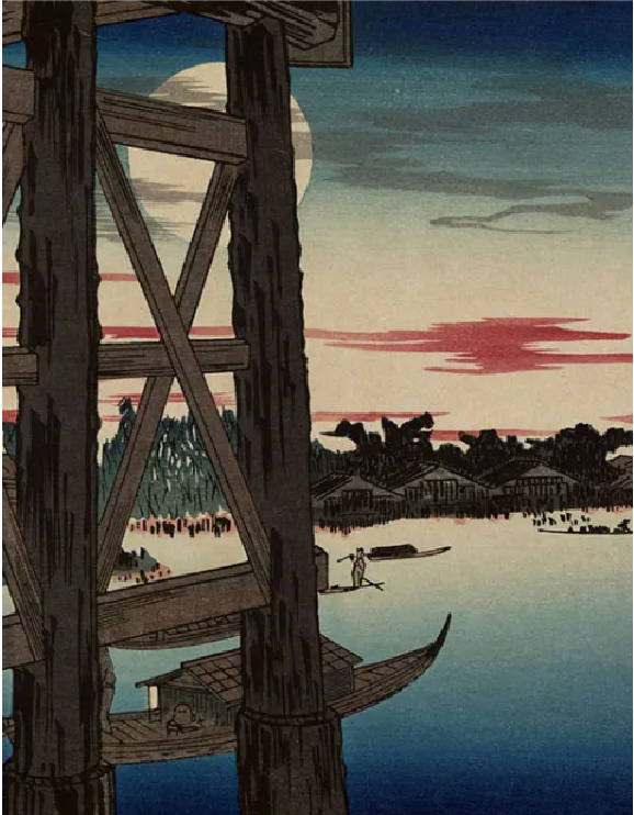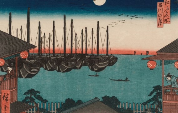 Утагава Хиросигэ. Луна над Синагаве. 1850 // Клод Моне. Темза в Вестминстере. 1871