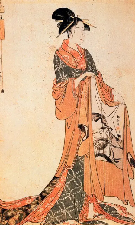 В 1760-х годах техника печати усложнилась. Художник Судзуки Харунобу впервые применил многоцветную печать нишики-э (в переводе «парчовые картинки», также известные как эдо-э). Это позволило отказаться от ручной раскраски изделий. Палитра гравюр стала богаче, а изображения — чище и точнее. Начиная с 1760-х годов Харунобу изготовил сотни изображений на классические и современные темы.
