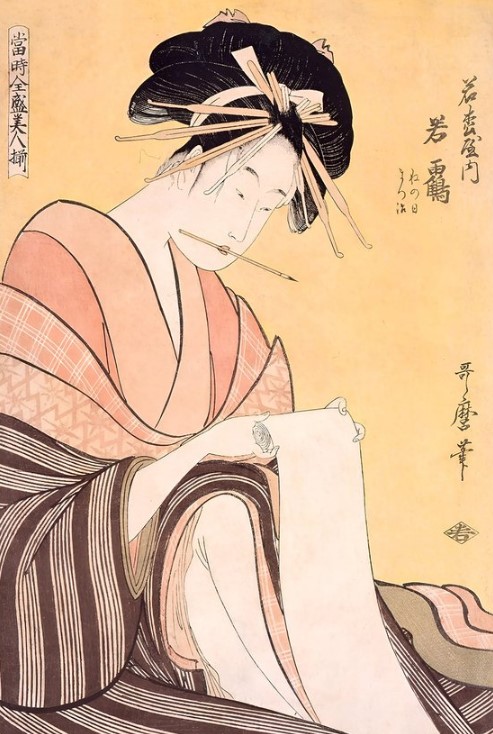 Китагава Утамаро. Высшее общество. XVIII // Китагава Утамаро. Лентяйки. 1792 // Китагава Утамаро. Воробей Йошивара. XVIII // Китагава Утамаро. Стильные развлечения четырёх сезонов. 1783