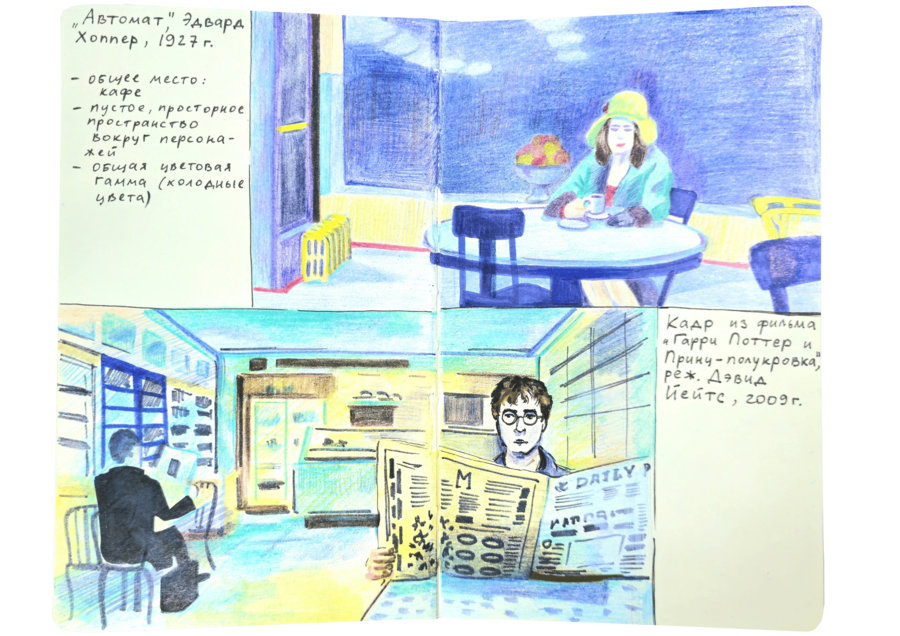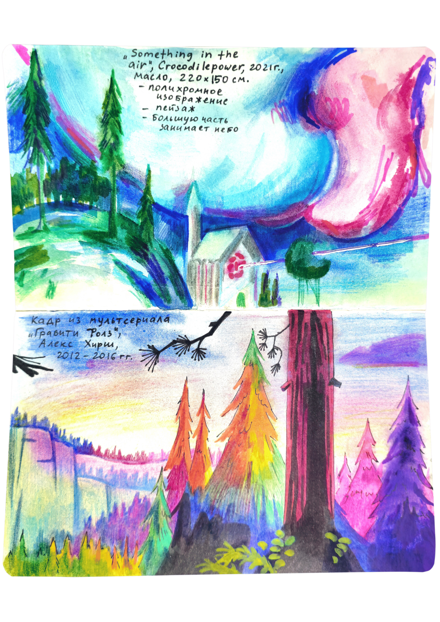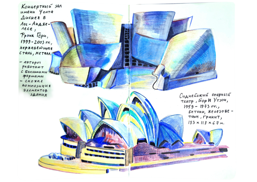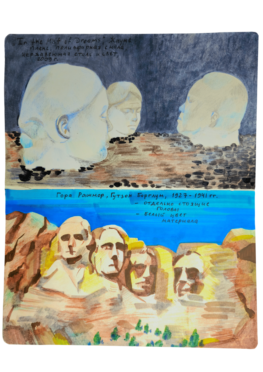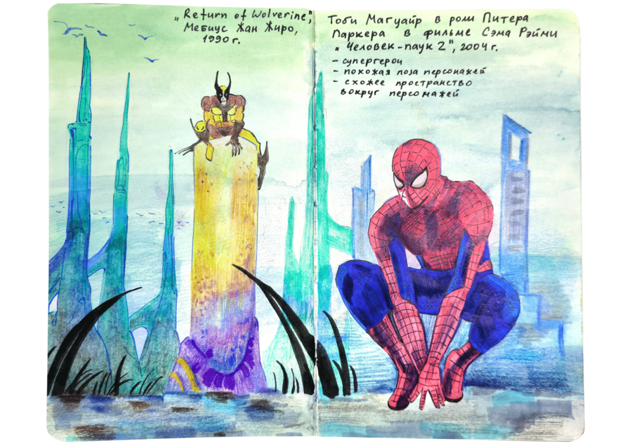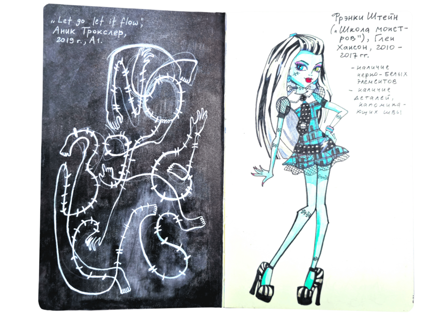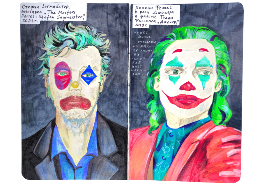 В данном визуальном исследовании нужно было подобрать пары к 25 работам предложенных дизайнеров, художников, иллюстраторов, архитекторов, скульпторов и к играм. Я старалась подобрать пару к данным творцам не из классического искусства, а, например, из массовой культуры. Таким образом мне хотелось показать, что искусство циклично и что приемы, которые использует скульптор, художник или дизайнер, могут также использоваться режиссерами и художниками-мультипликаторами.