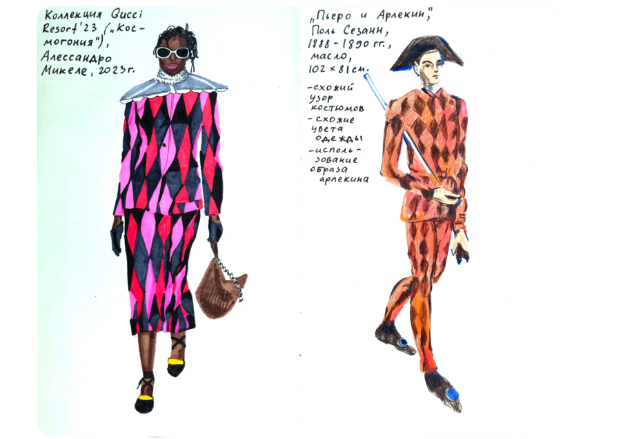 В первую группу я объединила те работы, в которых я сравниваю данных художников, дизайнеров и модельеров с различными персонажами и кадрами из сериалов и фильмов.