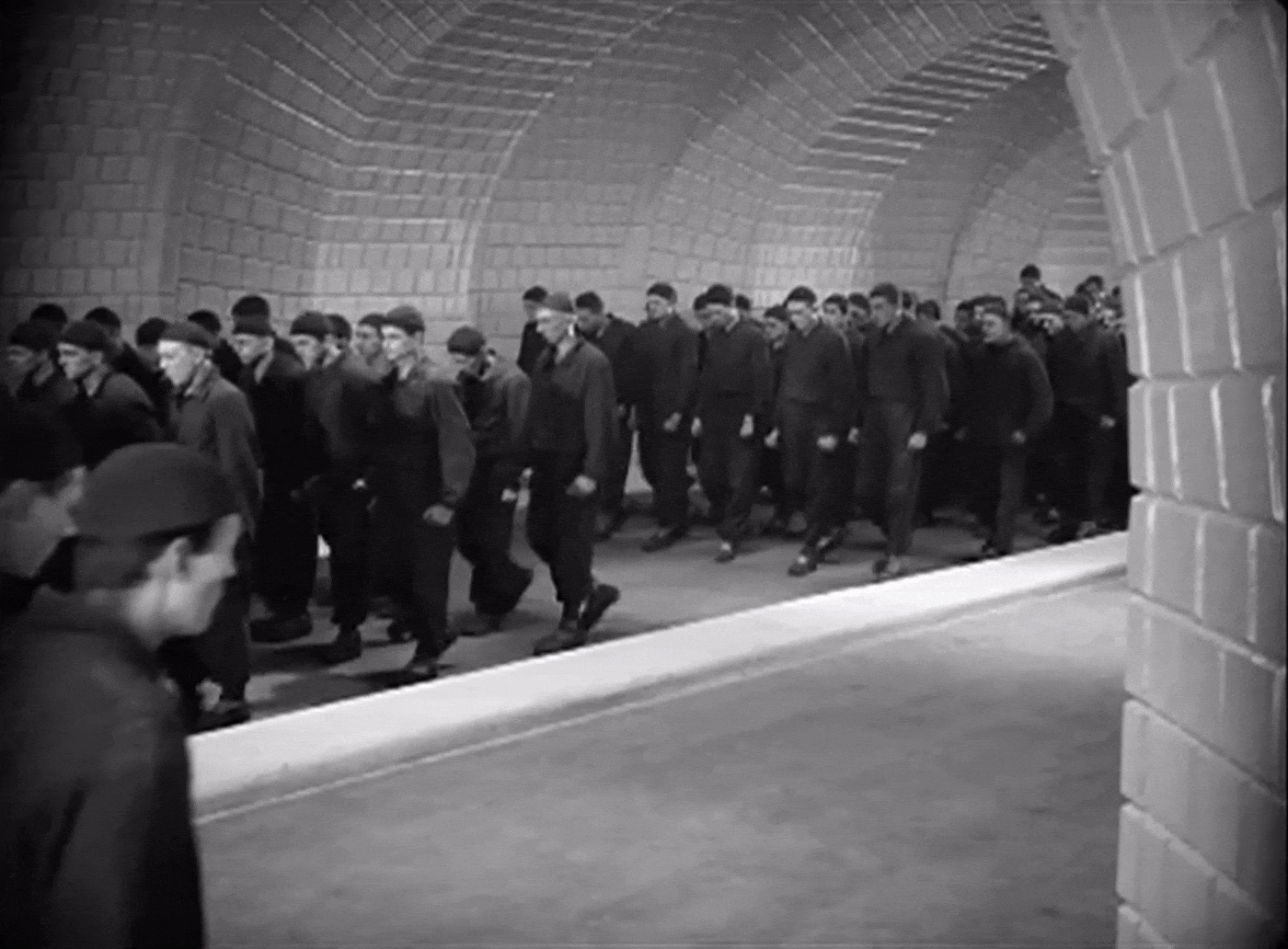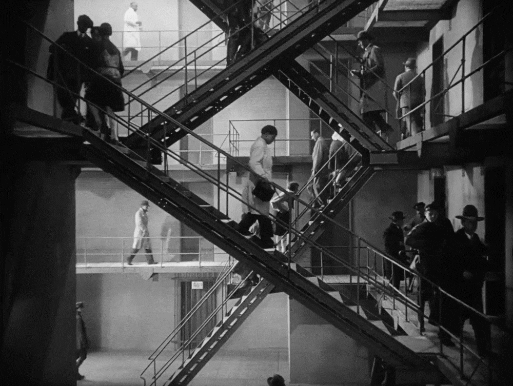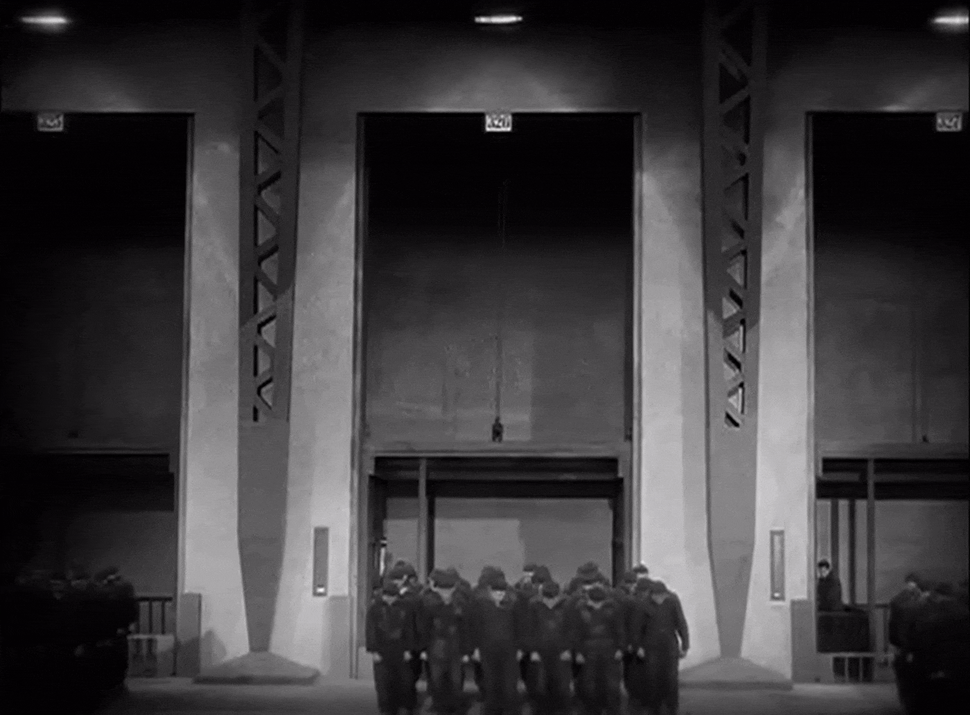 В Metropolis рабочие движутся синхронно, по заданному ритму. Механический цикл подавляет человеческую индивидуальность, а монтаж подчёркивает монотонность и изнурительность труда.