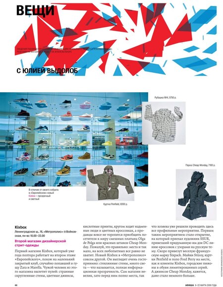 Составлялся список каких-то грядущих открытий, автор рубрики мог сходить посмотреть, чтобы понять, стоит это упоминания в «Афише» или нет. Могло открыться что-то большое, но «Афиша» могла это проигнорировать. Или на одной странице можно было увидеть рекламу кафе, а на соседней — честное мнение об этом заведении. Между рекламным отделом и редакцией была железная стена — мы даже не были знакомы с ними! Творили, что хотели. И выбирали исключительно по какому-то интуитивному ощущению. Писали о том, что интересно — exciting, даже если это мог быть какой-то крохотуля, совсем простой ремесленный бренд.