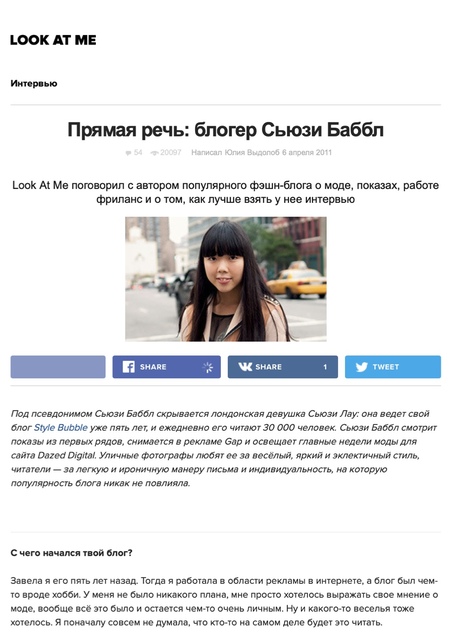 Людмила: А как в Look At Me выбирались материалы? Например, у кого брать интервью? Как принимались эти решения?