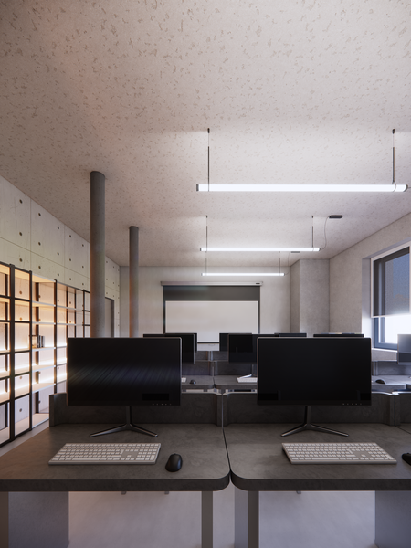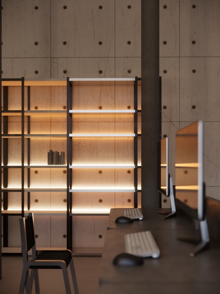 Концепция создания именно такого рабочего места напрямую связана с основным проектом (Дизайн кластера) — строго, серо, но не скучно