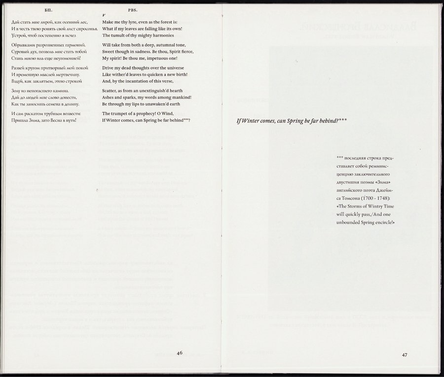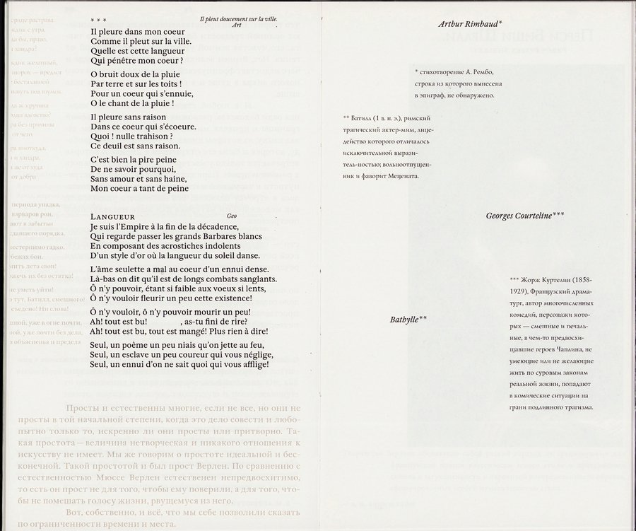 Смысловые блоки соединяют развороты с пояснениями в строкам оригинальных стихотворений. Композиция этих блоков вынесена на обложку и титульный лист.