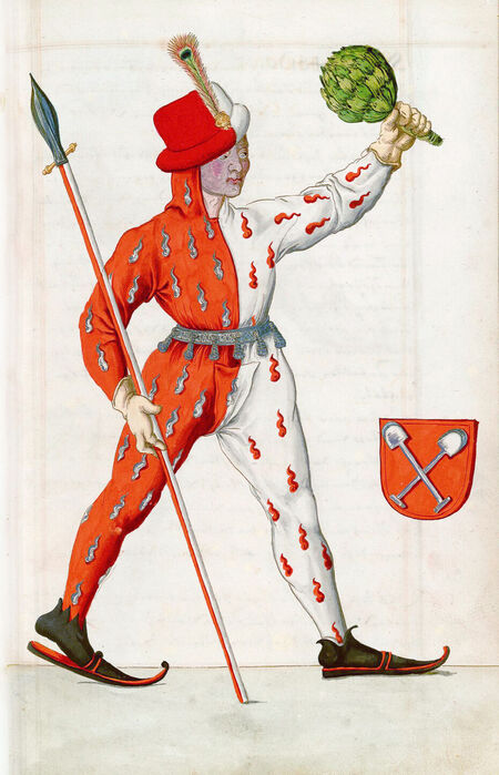 Неизвестный художник. Ход ряженых 1539 года: «Штурм ада». 1590–1620. Бумага, гуашь, свинцовый карандаш. Библиотека Калифорнийского университета, Лос-­Анджелес, США (Coll. 170. Ms. 351. Р. 160)