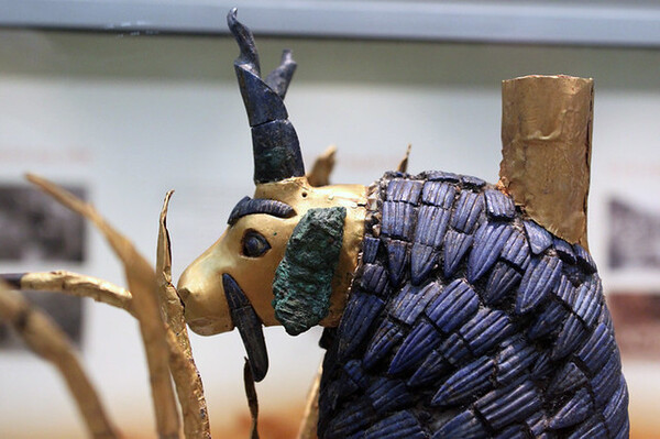 Кадры из фильма «Я — Семирамида». 1963. На одном кадре Семирамида рассматривает макет Вавилона, а на другом — идет строительство города / Статуэтка из «царских гробниц» Ура. Середина III тыс. до н. э.