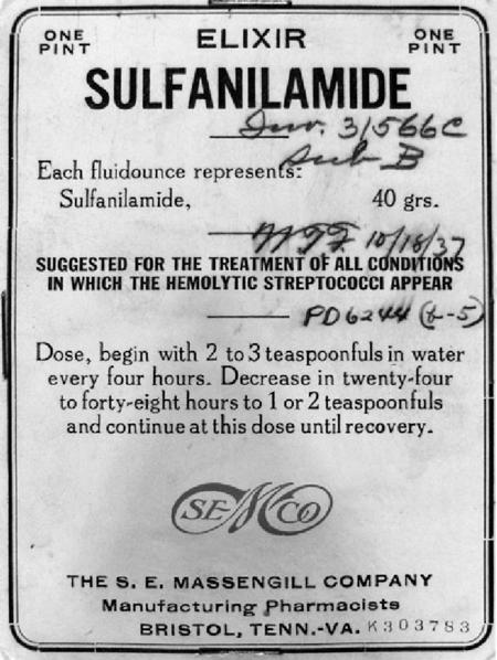 Слева: Этикетка лекарства, 1937 г. Справа стандартизированная этикетка лекарства, 1990-е г.