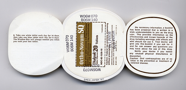 Первая блистерная упаковка Ortho-Novum SQ (Ortho, 1963 г.)