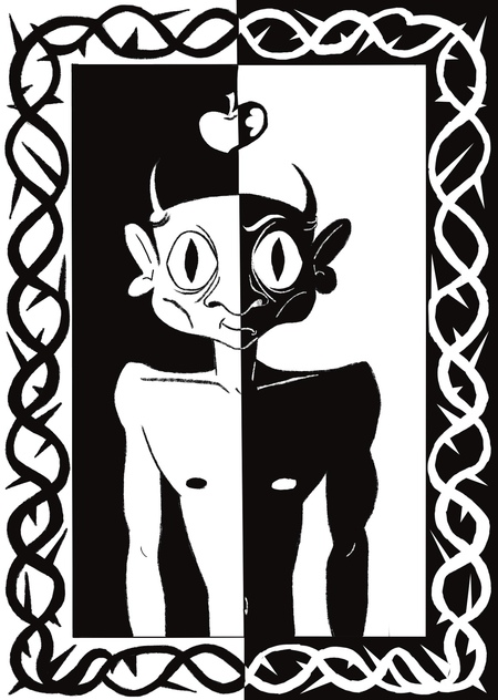 При обретении демонической формы глаза Люцифера охватывает яркий, пламенный красный оттенок. Его кожа приобретает тот же насыщенный, обугленный цвет[рис.45]. Вместе с этим происходит полное исчезновение волос на голове. Несмотря на трансформацию, у Люцифера не появляются ни хвост, ни рога.
